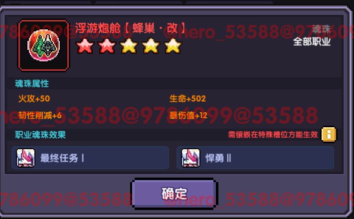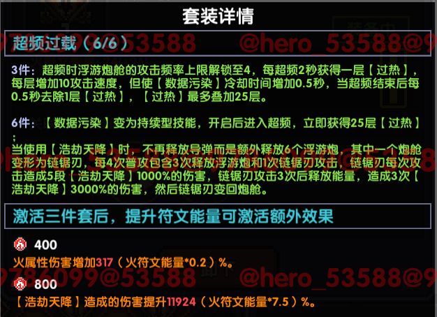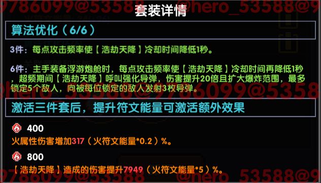 【5星效果】限制解除:使用【数据污染】修改自身数据开启超频,持续10秒,超频时每秒消耗4点能量,炮舱的攻击频率上限解锁至2。
