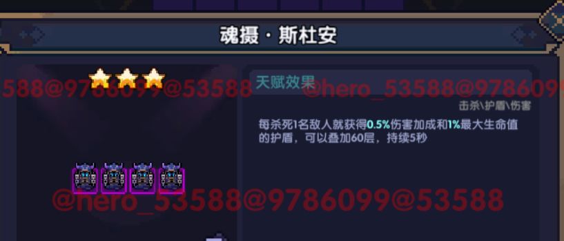 每杀死一名敌人获得0.5全伤,最多能叠60层也就是30全伤