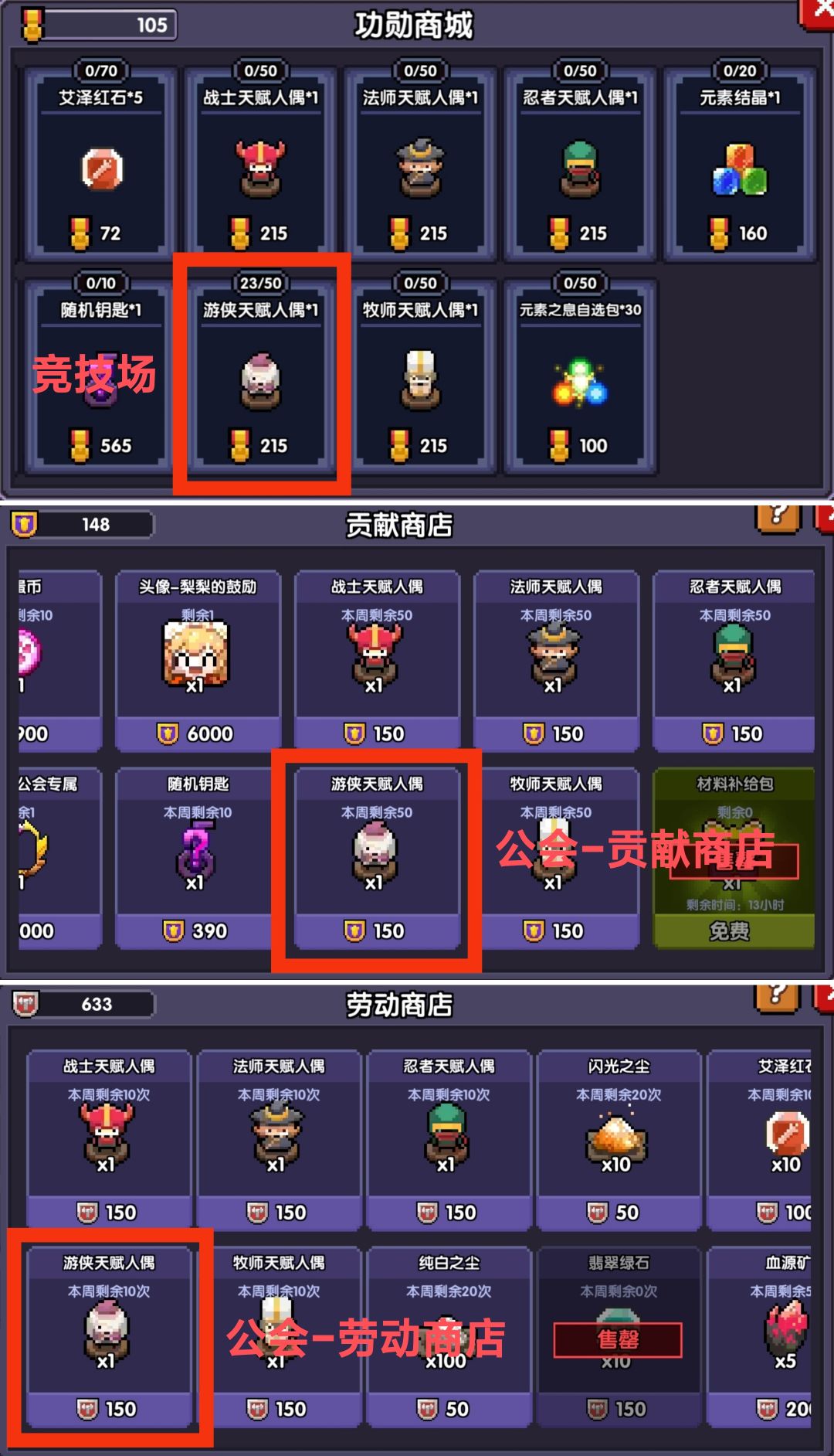 天赋人偶,每周都可以在竞技场、公会商店处白嫖