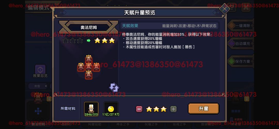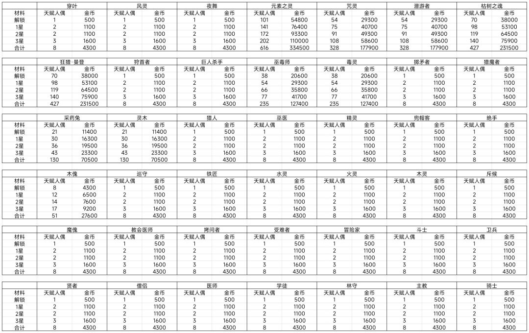 获取后,也是通过消耗对应职业天赋人偶和金币来升星