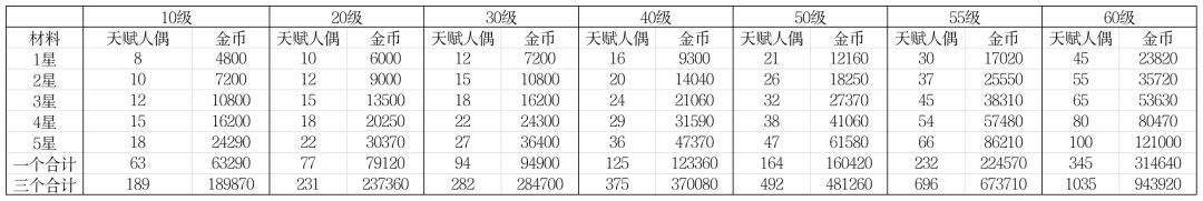 因此,在原来点满天赋的情况下,新版天赋不需要额外消耗材料,直接拉满即可
