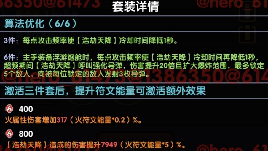3件套:每点攻击频率降低“浩劫天降”冷却1秒。(虽然武器的攻速上限是200,但依旧可以堆400攻速来吃满这个减cd效果)。