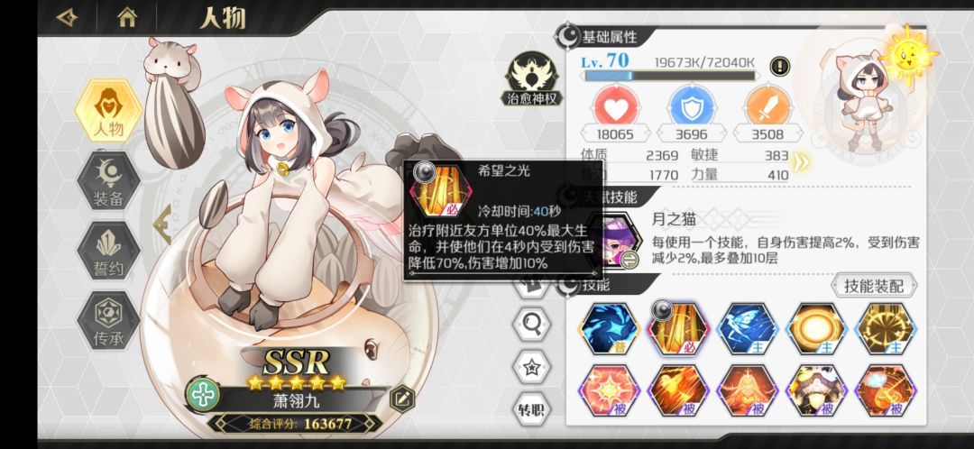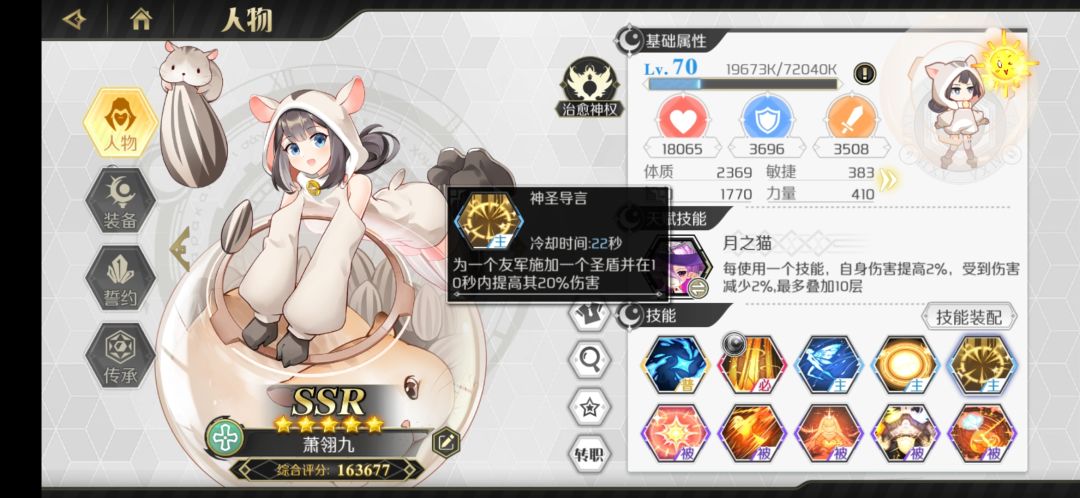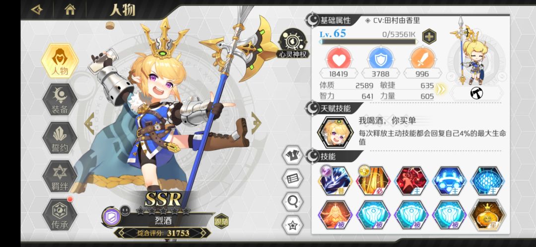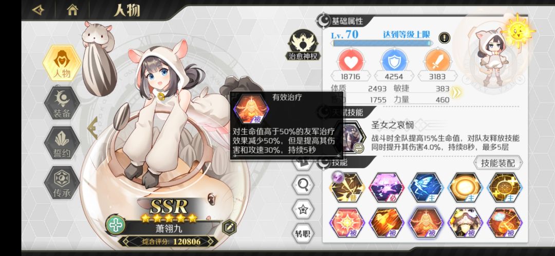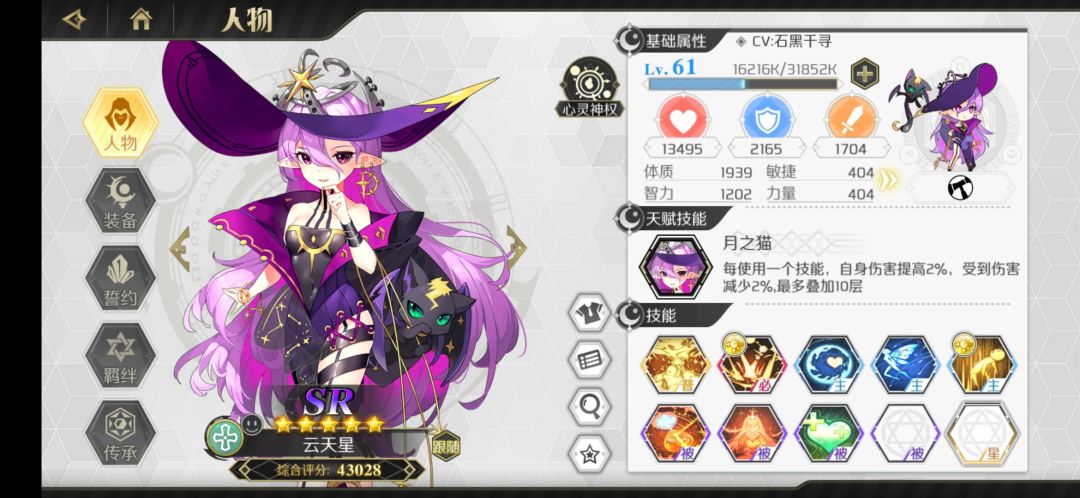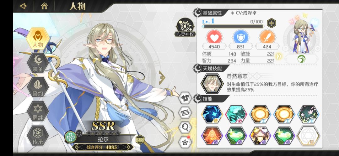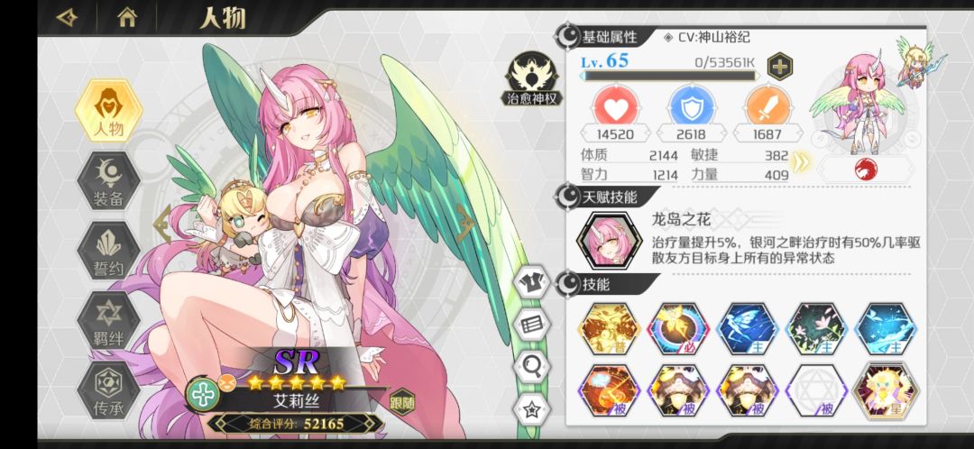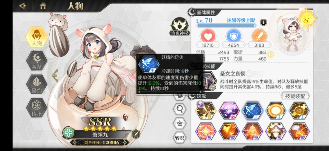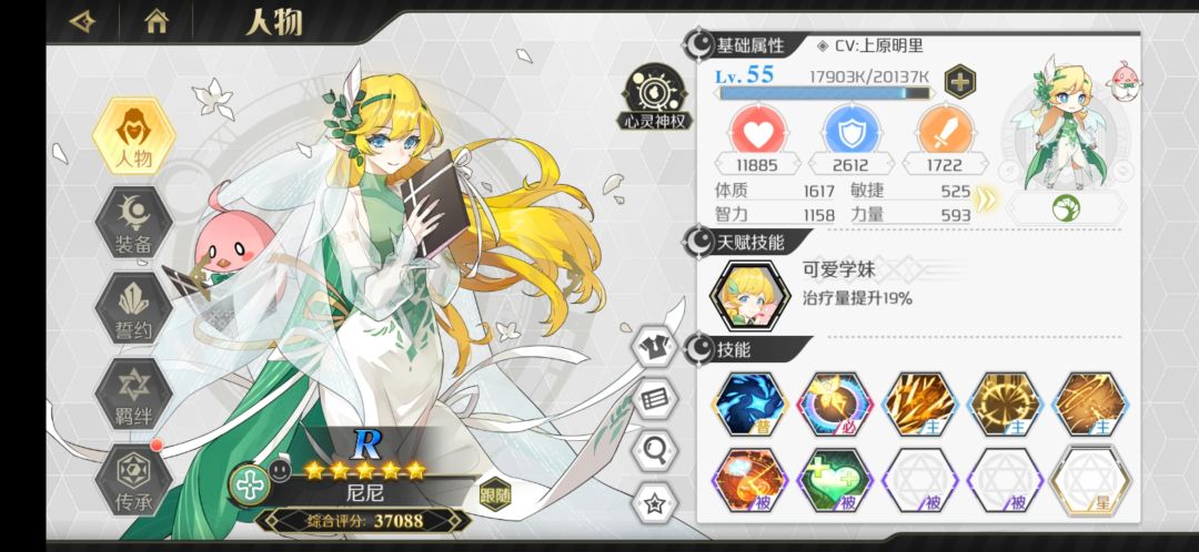 游侠里面非常不错的一个辅助,爬塔没有妮可奈奈的话可以带这个。可练,建议传承里面只点冷却