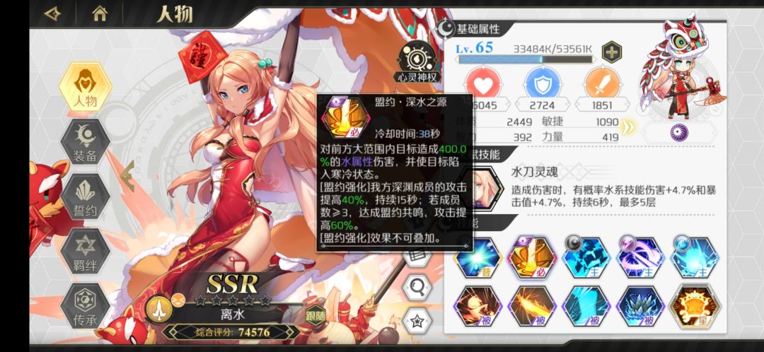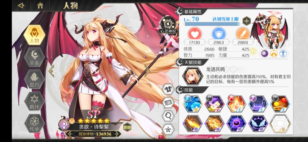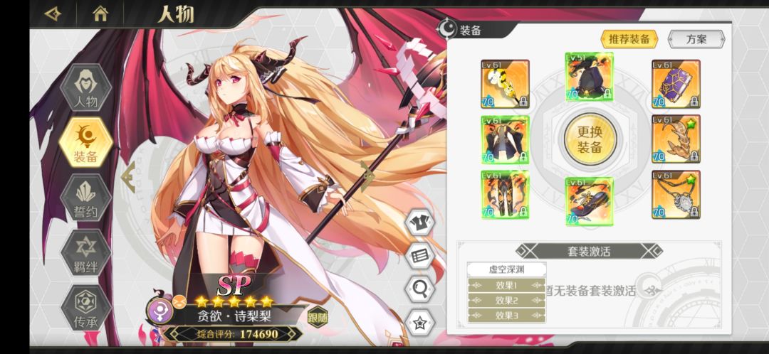 必备角色:夏衣、雅典娜、五星贪欲·诗莉莉(天赋)