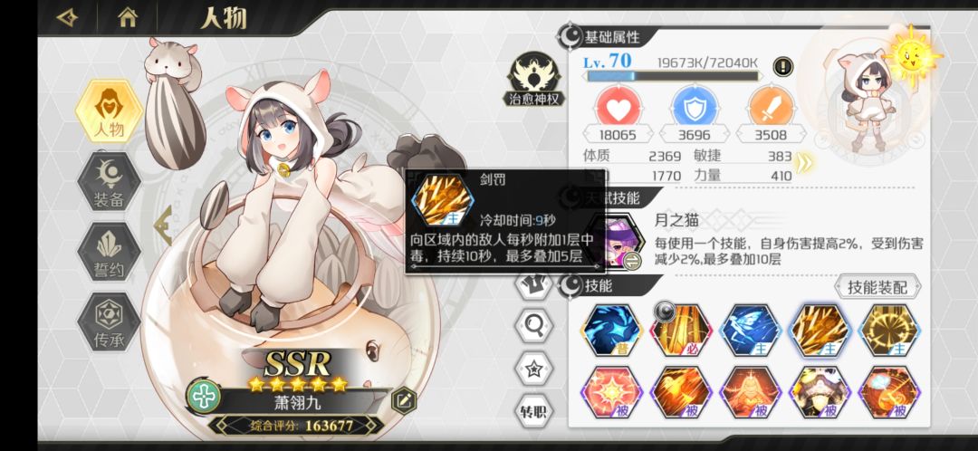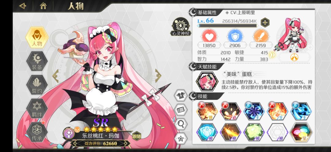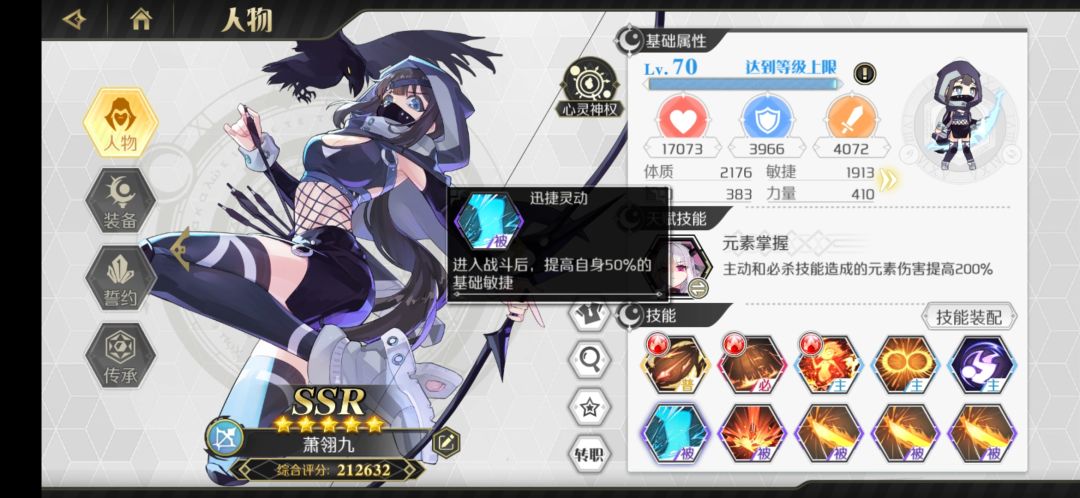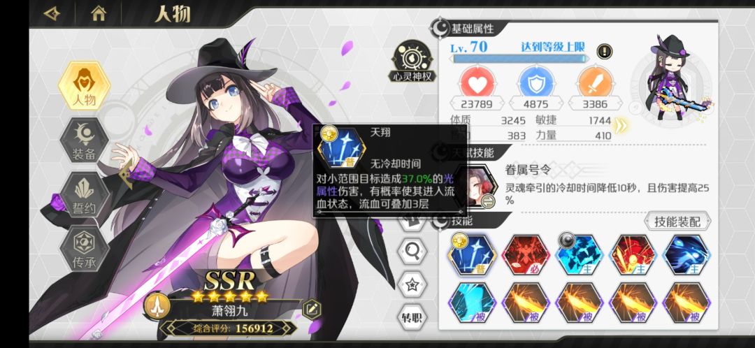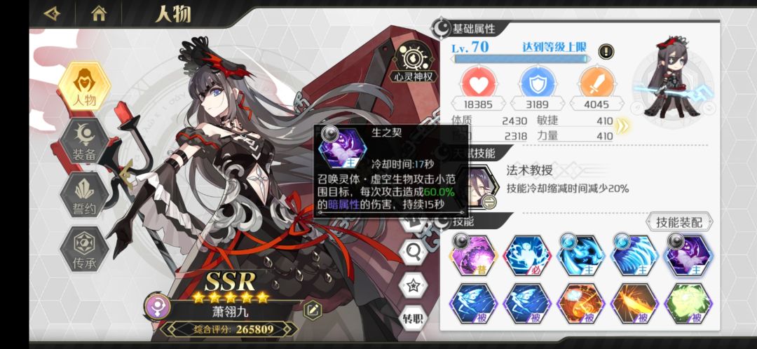 最不推荐萌新玩的职业。爬塔装备技能如图