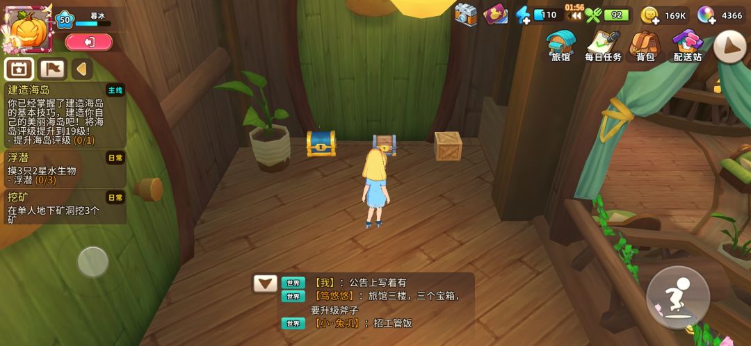 1、旅馆三楼有三个宝箱: