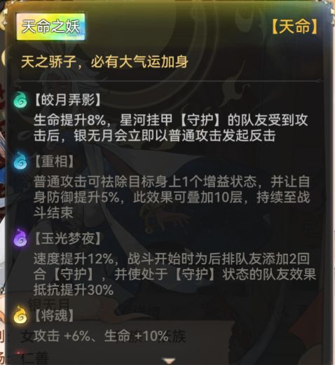 其次银无月还可以为后排队友施加守护效果,减伤害的同时也帮助后排承担伤害。