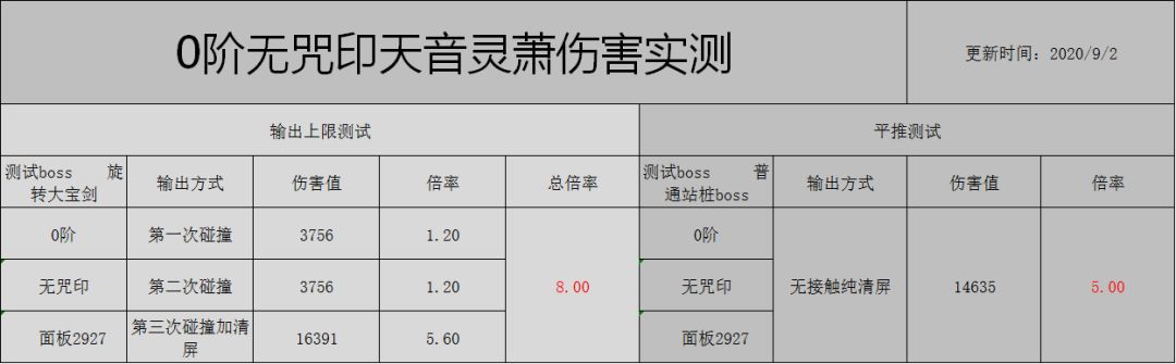 1、 伤害实测:0阶无咒印天音灵萧平推伤害倍率5.00,打满伤害倍率8.00;