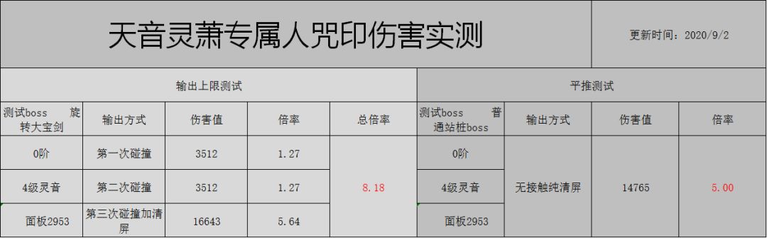 1、天音灵萧基础伤害数据为实测, 顶配天音灵萧数据为依据武器技能和咒印提升机制推算;