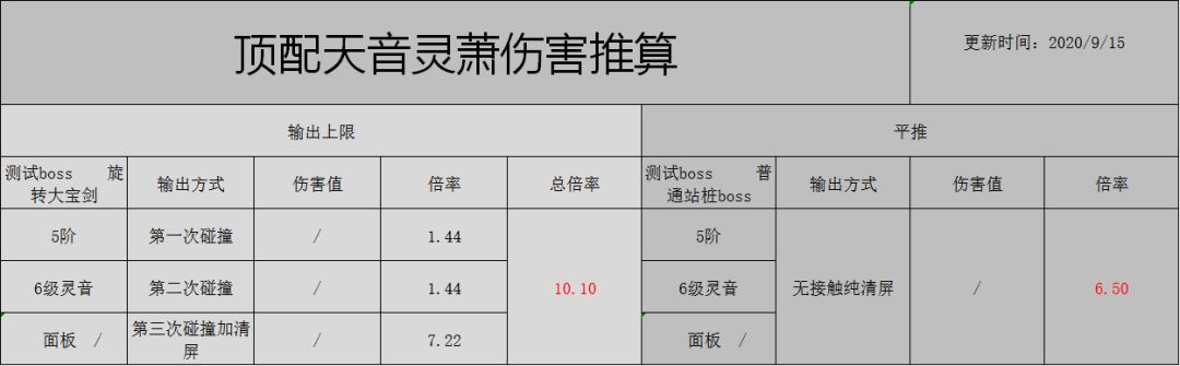 2、 伤害推算:5阶无咒印天音灵萧平推伤害倍率6.50,打满伤害倍率9.80;