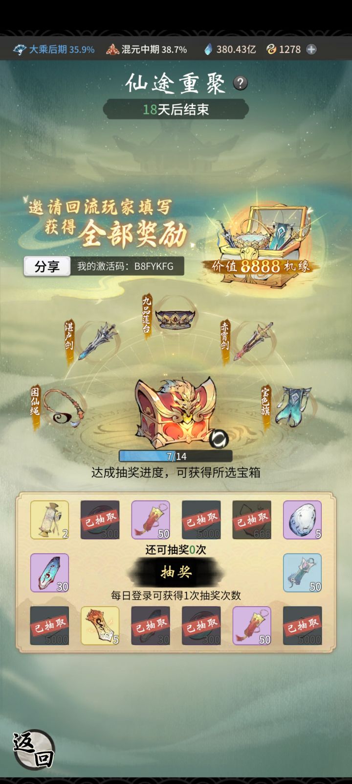 仙路漫漫,唯吾作伴。密令(兑换码)如下
