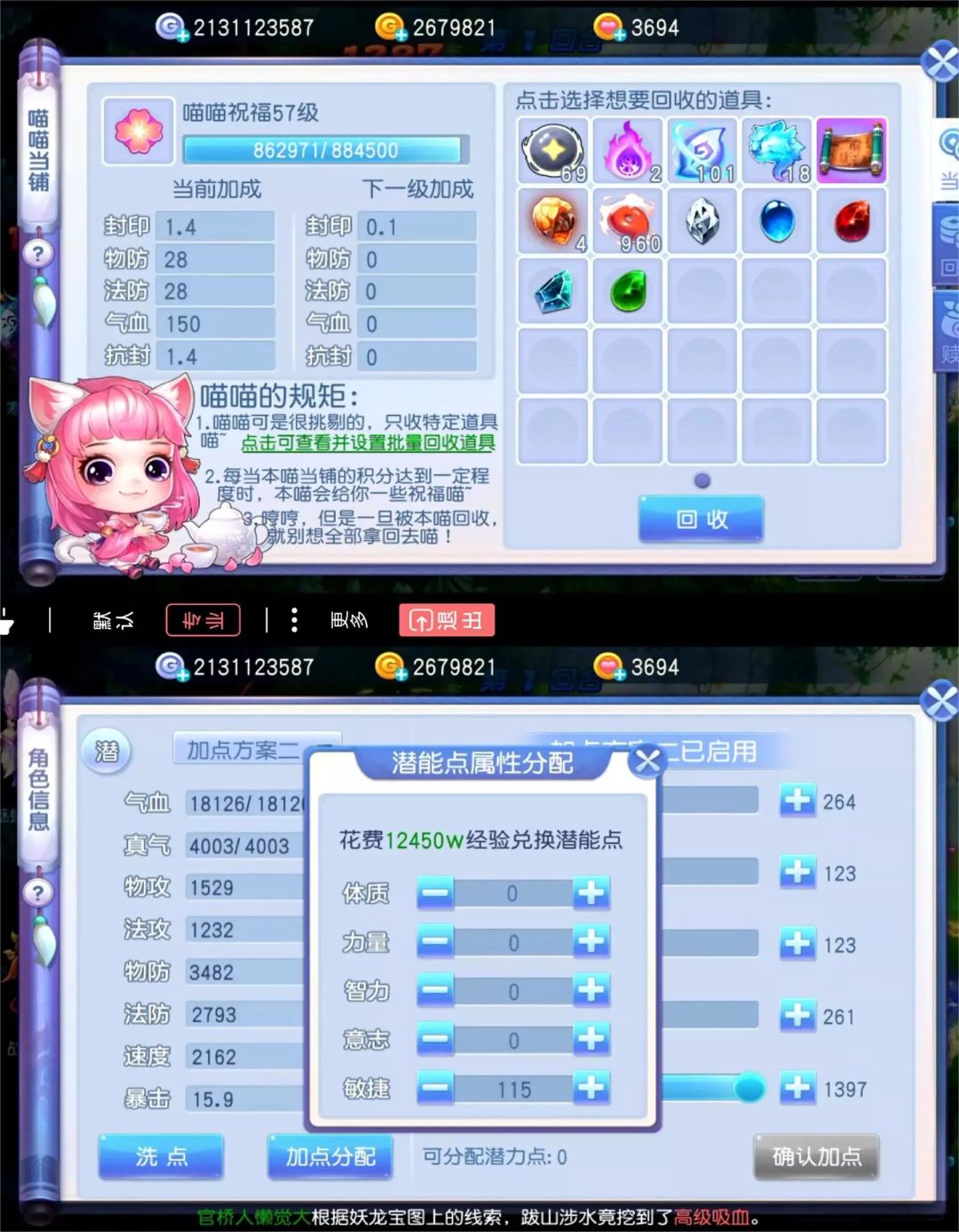 潜能就不用说了,就是多刷任务,多获得经验,可能你会说那别人也一直在刷,你可以看一下潜能后期要的经验要越来越多,所以说我们双方的差距会逐渐缩小!然后就是当铺这块,最大的来源其实也来自于每天基础任务给的多余的道具!例如藏经阁、洞天等!日积月累越来越高!着急的可以往里面丢宝石、金币道具,缩短差距!