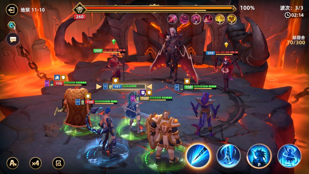 注意事项:最终Boss两条命,回合数越多他伤害越高,不要以为马上打死他就掉以轻心。在前面两波次打小怪的时候也要注意,不要先打嘉莉(怪兽抱着洋娃娃那个英雄)她死亡后会增加对面的暴击率并且降低我们的暴击率,所以先集火打其他小怪。