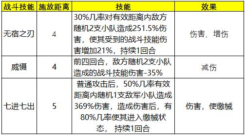 中排骑兵支援英雄。5技能高概率使小队进入复生状态,并恢复兵力值,提升队伍存活率。8技能有概率跳回合,增加队伍技能伤害,使队伍更快出手。