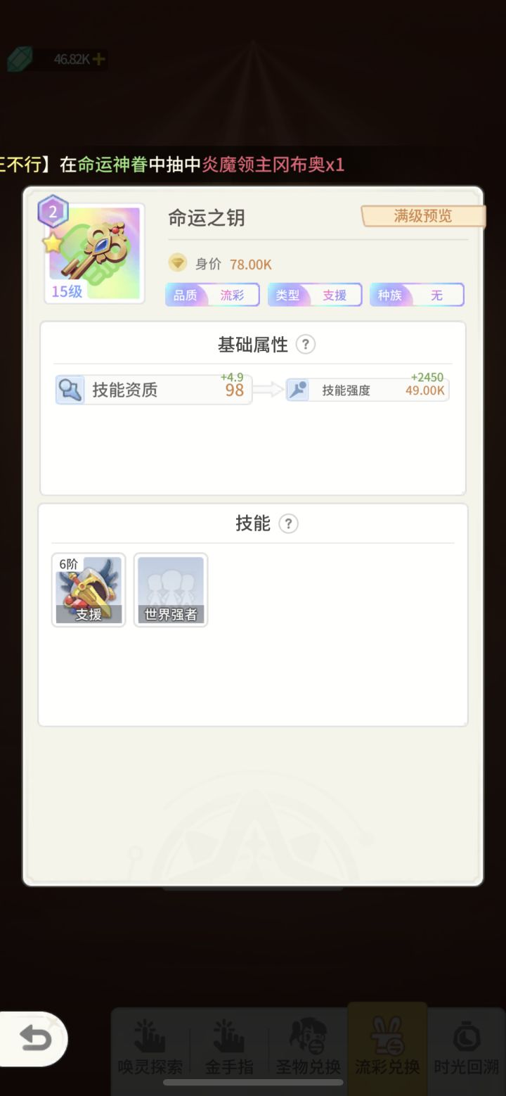 图1,Peter,相信玩过不思议迷宫的小伙伴对他都不会陌生吧,技能效果是随机运行一个惊喜程序(1.在场后随机召唤一定数量的充气猴宝宝,属性极低,甚至不如炎魔召唤出来的小弟。2.回复我方世界之子一定的生命值,依旧十分鸡肋,无事发生。3.对敌方世界之子造成一定伤害,伤害确实很客观,可是四分之一的概率比较看脸,稳定性不佳。4.对敌方2~4个随从造成一定伤害,可有可无吧,比起冈布奥其他法术牌的伤害,勉强算锦上添花。),看着效果很多,真正有用的可以说没有,总结下来就是一张来搞笑的彩卡,有收藏爱好的可以弄一下,强度党可以直接忽略。图2,命运之钥,幻想流阵容的核心(什么是幻想流,就是做梦的时候想想就行),理论上能够不停的触发王昭君冈布奥、海格力斯冈布奥和神龙冈布奥的战吼来养一个超级大哥以及疯狂削弱对面,实际上世界之子的法力技10s才能放一次,正常的战斗尤其是和夏娜的战斗基本30s就结束了,很难达到预期效果,所以目前钥匙只能用来砍树,个人觉得冈布奥所有卡都满级后再换吧。
