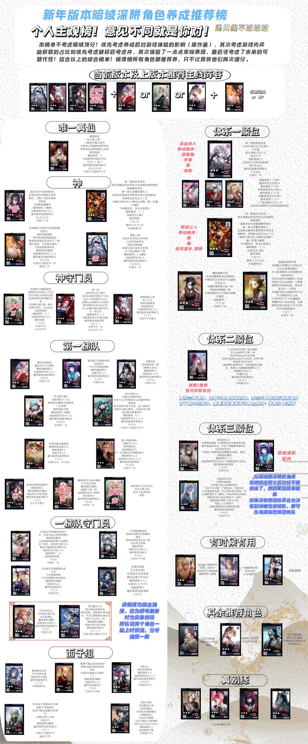 (目前没up就跳下一个,后文有萌新现在具体该抽谁要怎么规划。如有歧义请阅读全文,理性判断,谨防断章取义带节奏,榜单为性价比角度主观推荐,你杠就是你对)
