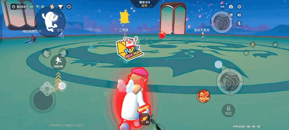 痛击飞球这个模式很好理解,就是八人同台竞技的场内会有一个球让我们来回拍打,当身上被红光围绕时,就意味着该我们拍打飞球了(击飞球按下攻击键即可,不过要记住要等球离我们比较近的时候再按哦)如果我们没有把球成功的传给他人拍打,那我们就会被飞球淘汰,反之则不会。我们还可以通过视角转动来将球传给自己想传的人。如果我们没有接住球被球淘汰了,那我们就会进入一回合的观战席,只能等待下一阶段。不过在观战席内,我们可以试着调整自己的技能以及作战方式,亦或者说在观战席内观看其他肠肠为我们带来的一场精彩的痛击飞球决赛。在场内,我们还可以使用技能,也就意味着会有许多五花八门的技能在场内不断使用。这个模式也是非常的good,他还有一个奖励机制,每当我们淘汰敌人会有概率掉落货币~