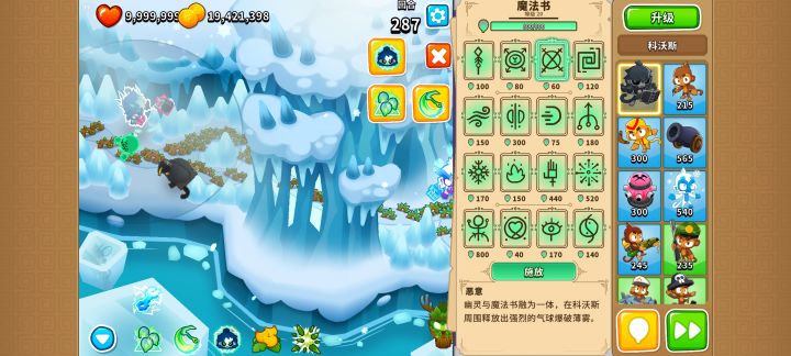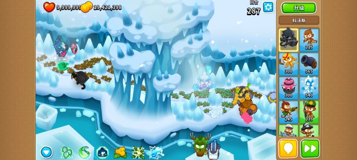 4.冰猴点位称为辅助位。我们把冰猴升级为520,主要是因为上路可以破铅,还可以减缓气球的移速,帮助刺钉工厂快速囤积永钉。一举两得。