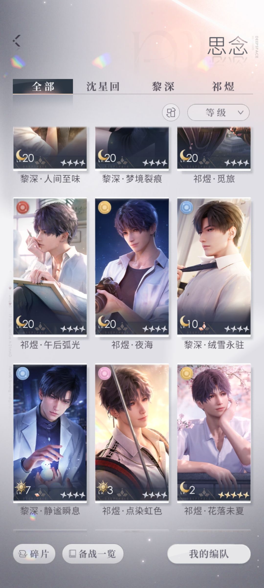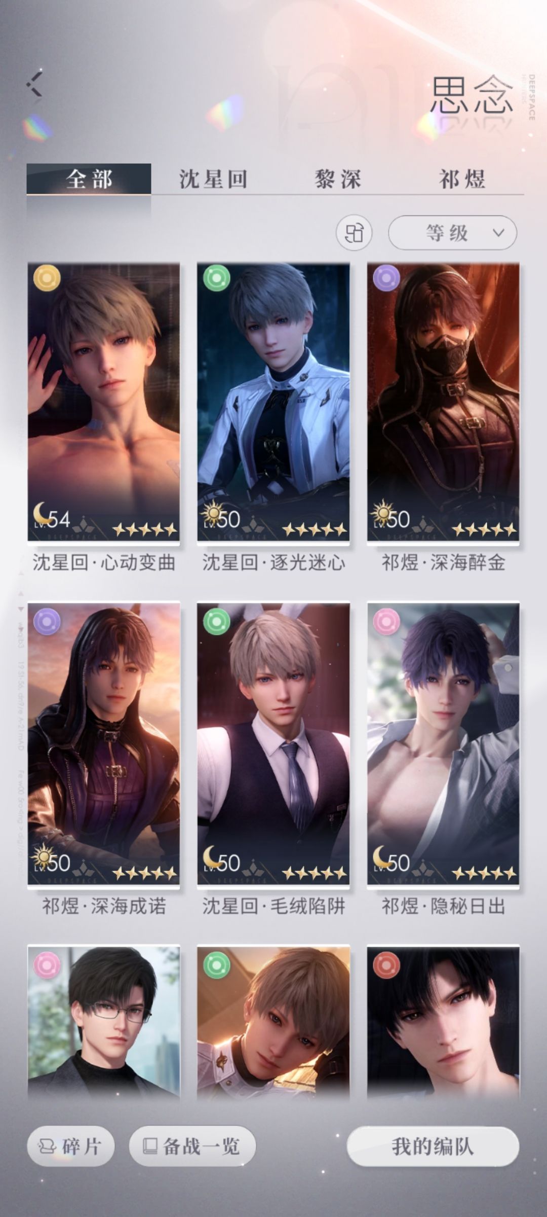 对于新出了卡池,无所谓了,我七十抽下去歪了,本来就是零氪,十个五星角色养不起呀,体力各种缺,我主推小鱼,星星,战斗衣服齐了,各四张五星,黎深就二张还是自选了,要不然一个都没有,出了东西我也发了,不是重复就行,玩慢慢养,多了反正也养不了,我现在就是要做的把星星,鱼各四张五星拉六十级。