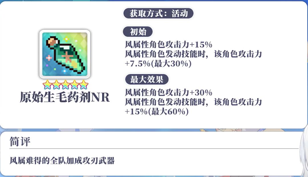 在风属性武器中数值第二的全队加成武器,第一是大葱剑(技伤完全用不了),所以含金量真是莫名就高了起来呢