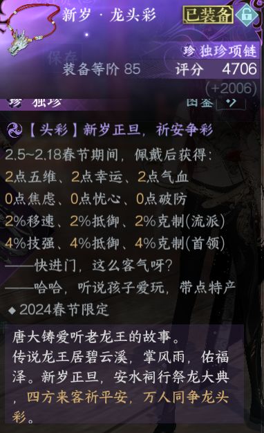 今天二月五号新春装备龙头彩的装备属性正式显现!