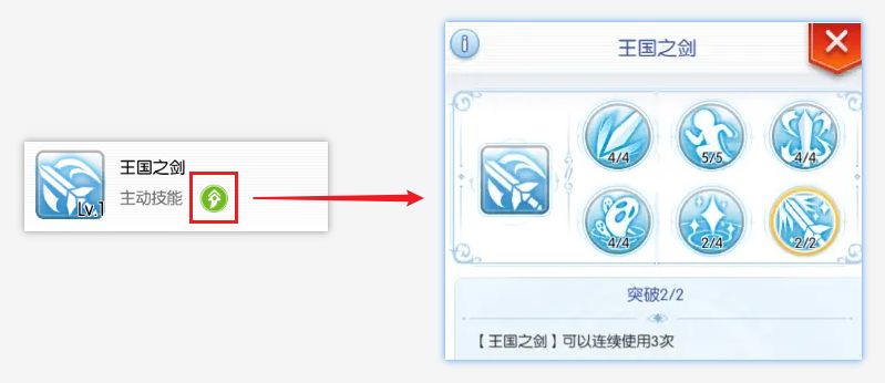 提升白骑士勋级可习得“突破”技能,从而提升国王之剑的连续使用次数,最高可叠加到3次。