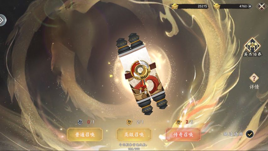 3、使用高级英杰召唤令可在高级/传奇卡池召唤英杰,在常用商城可用金子购买高级英杰召唤令。