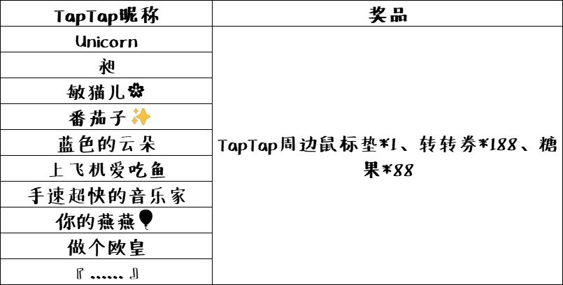 我们将抽出10位小店长,每人送上Tap鼠标垫*1、转转券*188、糖果*88