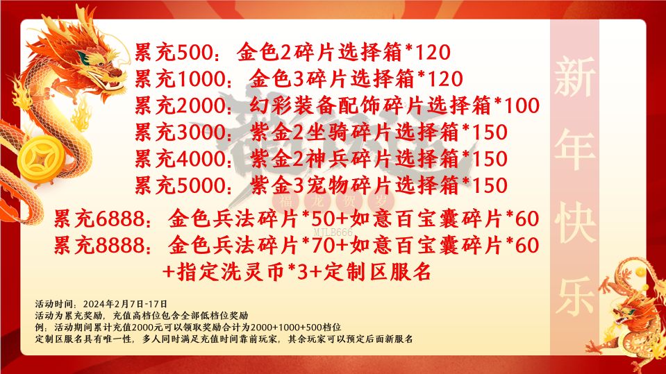 春节福利八:春节累充,金书幻彩,定制区名