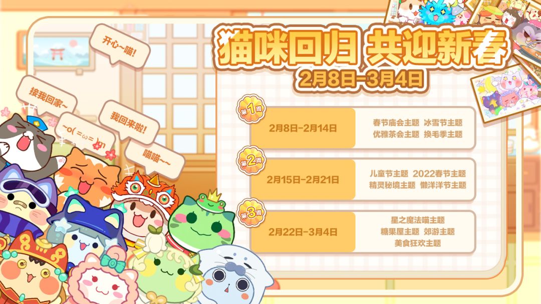 第三期:2月22日上午10点至3月5日上午10点复刻主题:星之魔法喵 糖果屋 春日郊游 美食狂欢