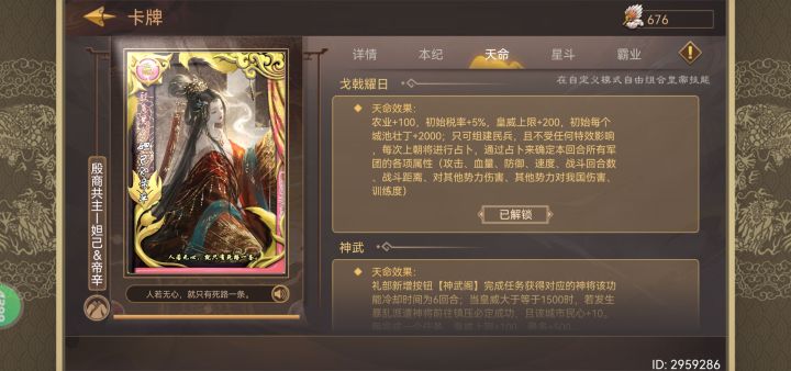 然后是徐州之战,需要妲己天命【戈戟曜日】,这个技能的效果是只能招民兵,但是民兵的属性在每月上朝的时候随机一次。