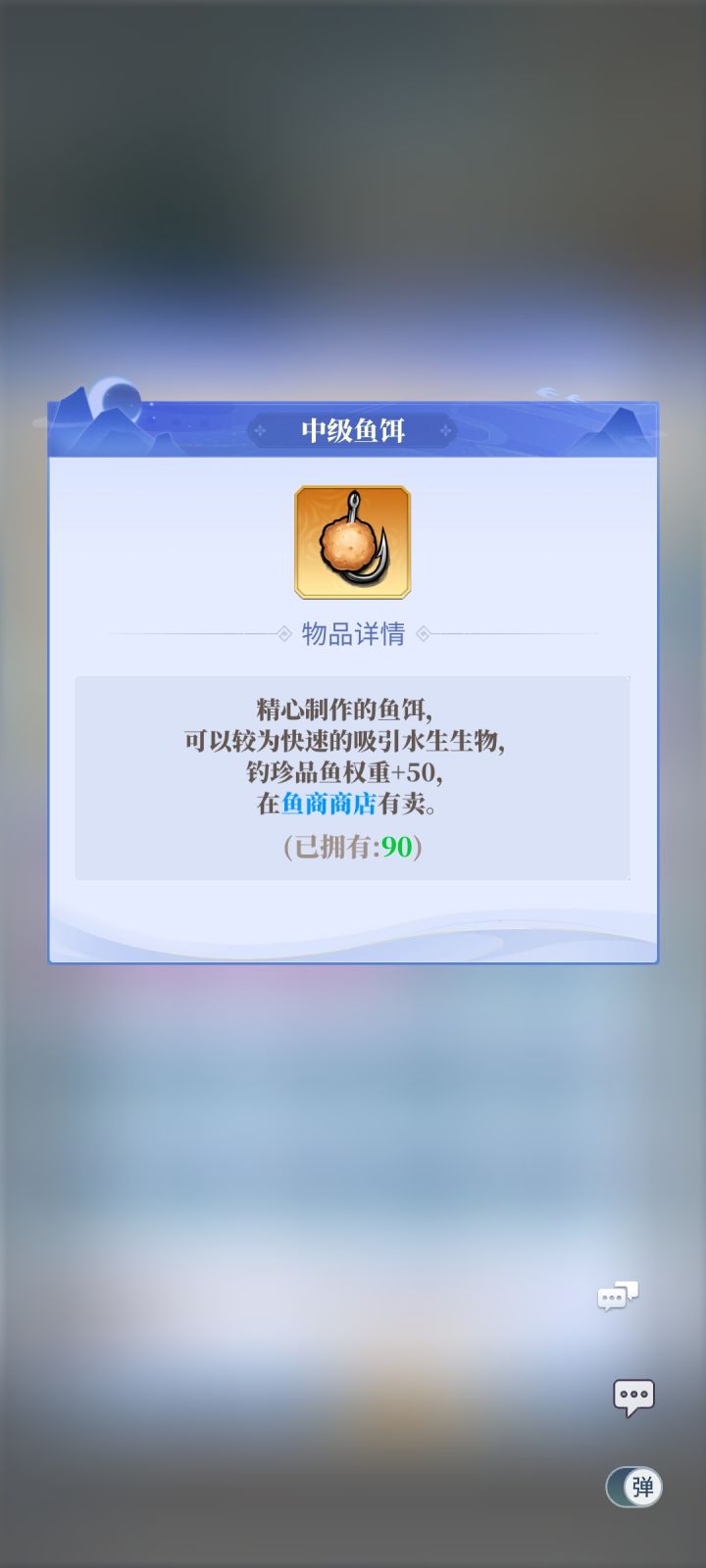 四:鱼饵:鱼饵目前一共有三种品质:蓝~橙~红,钓一次消耗1个鱼饵。蓝饵和橙饵非常容易获得,可以通过抽奖,开宝箱,任务奖励,金币购买。红饵可以通过活动奖励获得。鱼饵品质越高,钓鱼出高品质的鱼概率越高。