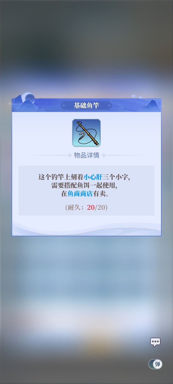三:鱼竿一共有5种品质,从低到高分别是:白~蓝~紫~橙~红,所有鱼竿耐久都是20次,钓一次消耗1耐久,耐久消耗完鱼竿就没了。白色鱼竿只会在你第一次和第二次进入野池塘(非同一个)免费送你1个。蓝色鱼竿商店每日5万金币买一个,每天限购10个,紫色鱼竿商店每天1灵石一个限购一个。橙色鱼竿可以通过活动免费获得。红色鱼竿只能通过氪金礼包获得。鱼竿品质越高,钓鱼出高品质的概率就越高。