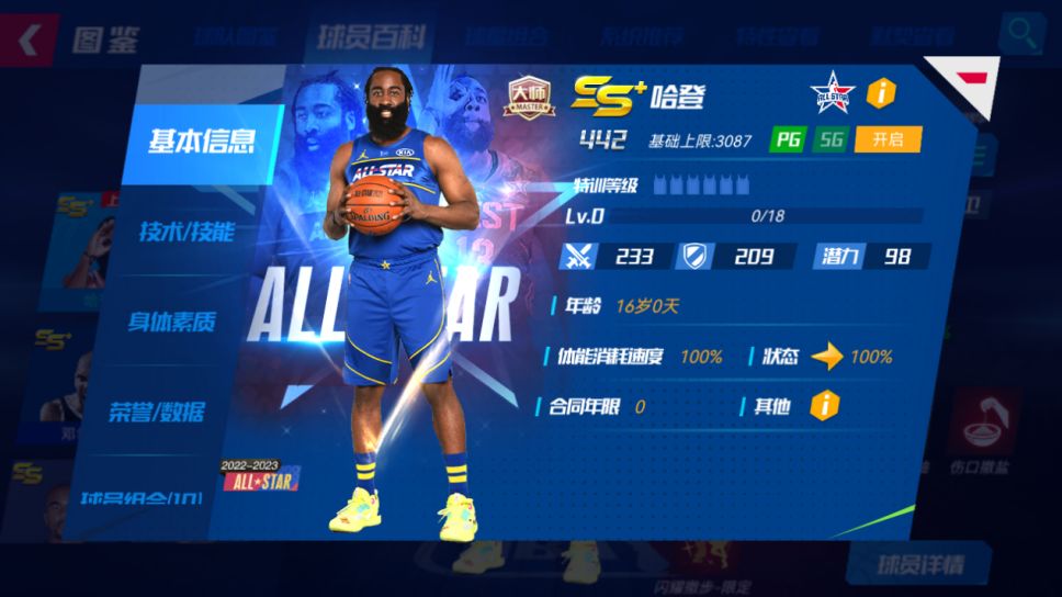 升级宗师后球员详情界面: