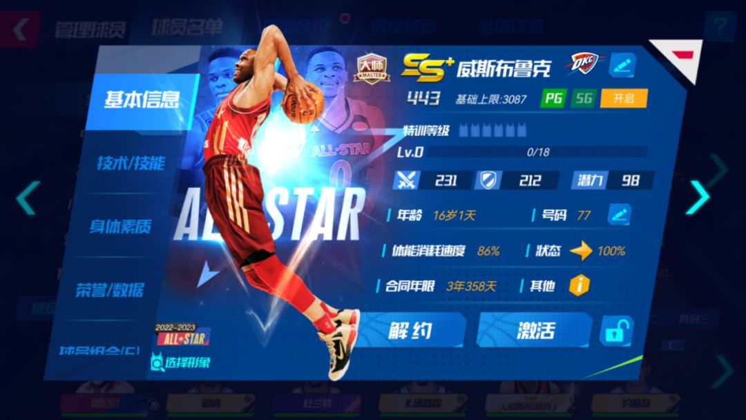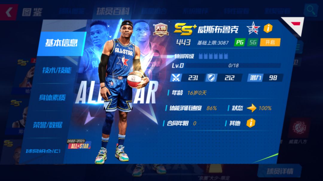 威斯布鲁克(全明星) 基础能力上限:3087