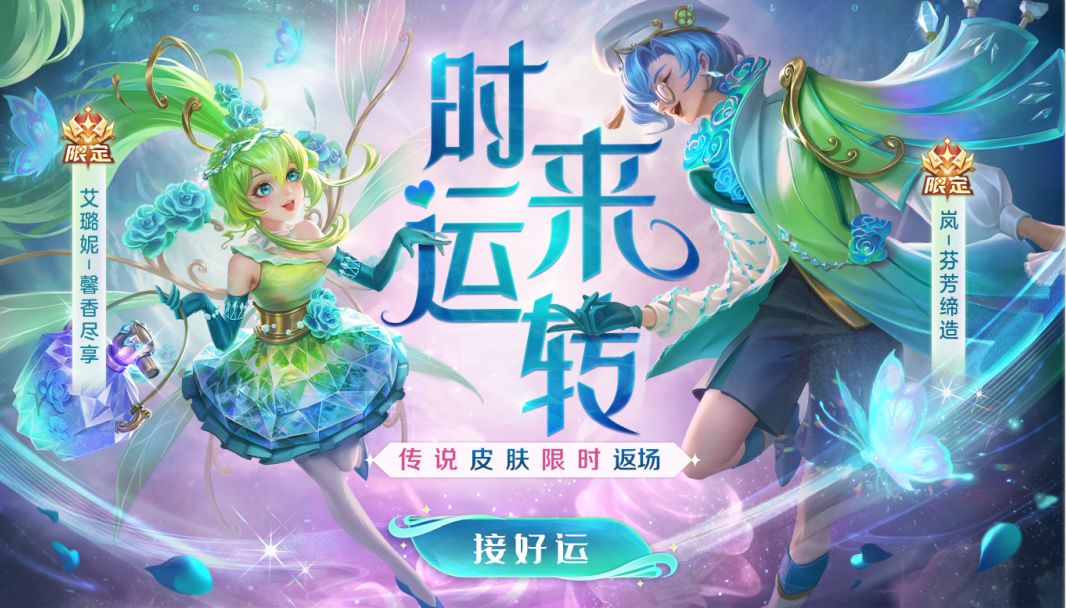 传说限定皮肤岚·芬芳缔造、艾璐妮·馨香尽享限时返场,九抽可获得所有奖励