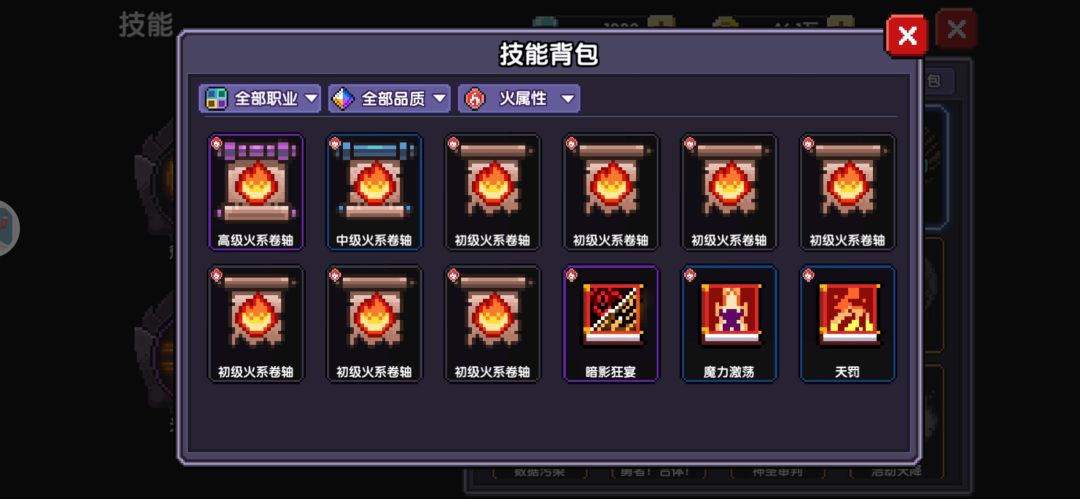 技能查看自己的技能背包有什么属性是两本的,可以用用升星