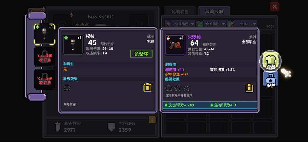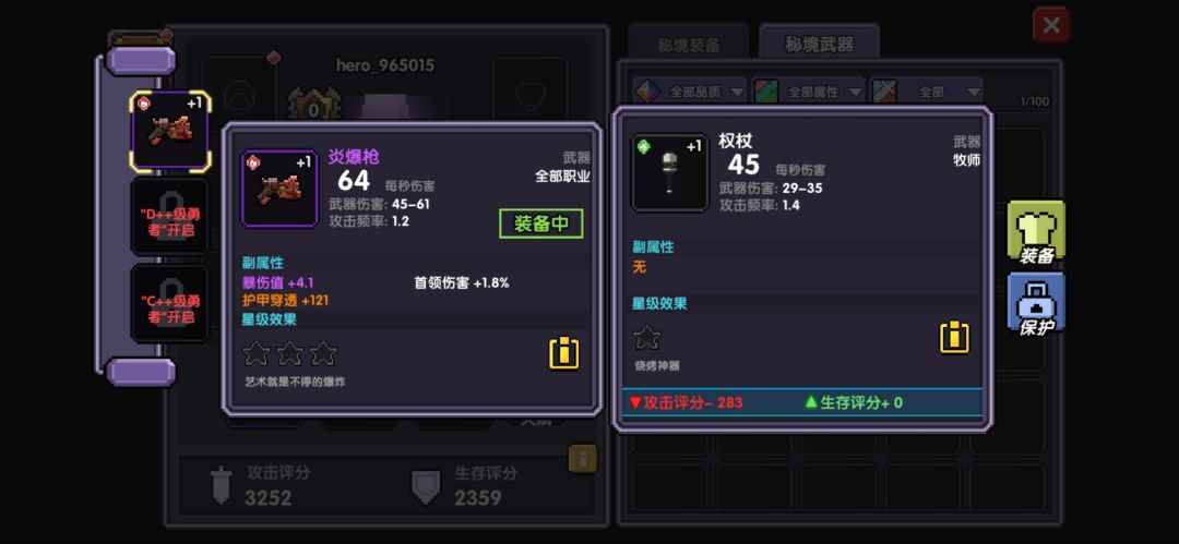 1层,打完引导抽取武器,获取紫武炎爆枪(每日免费一抽省一个币),替换后记得锁定白武作为收藏使用