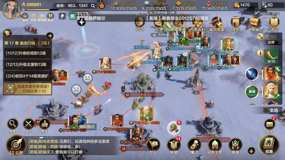 前言:上期说到【君临天下】与【华夏】一盟因领地扩张爆发大规模冲突,在其余几个新晋联盟的帮助下,最终由【君临天下】获得本次胜利;