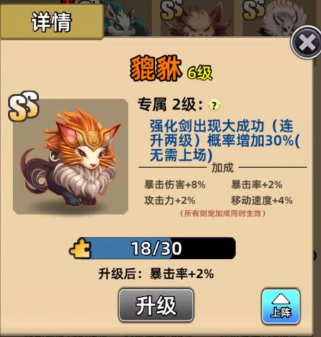 貔貅属性:强化剑出现大成功(连升两级)概率增加20%(无需上阵)