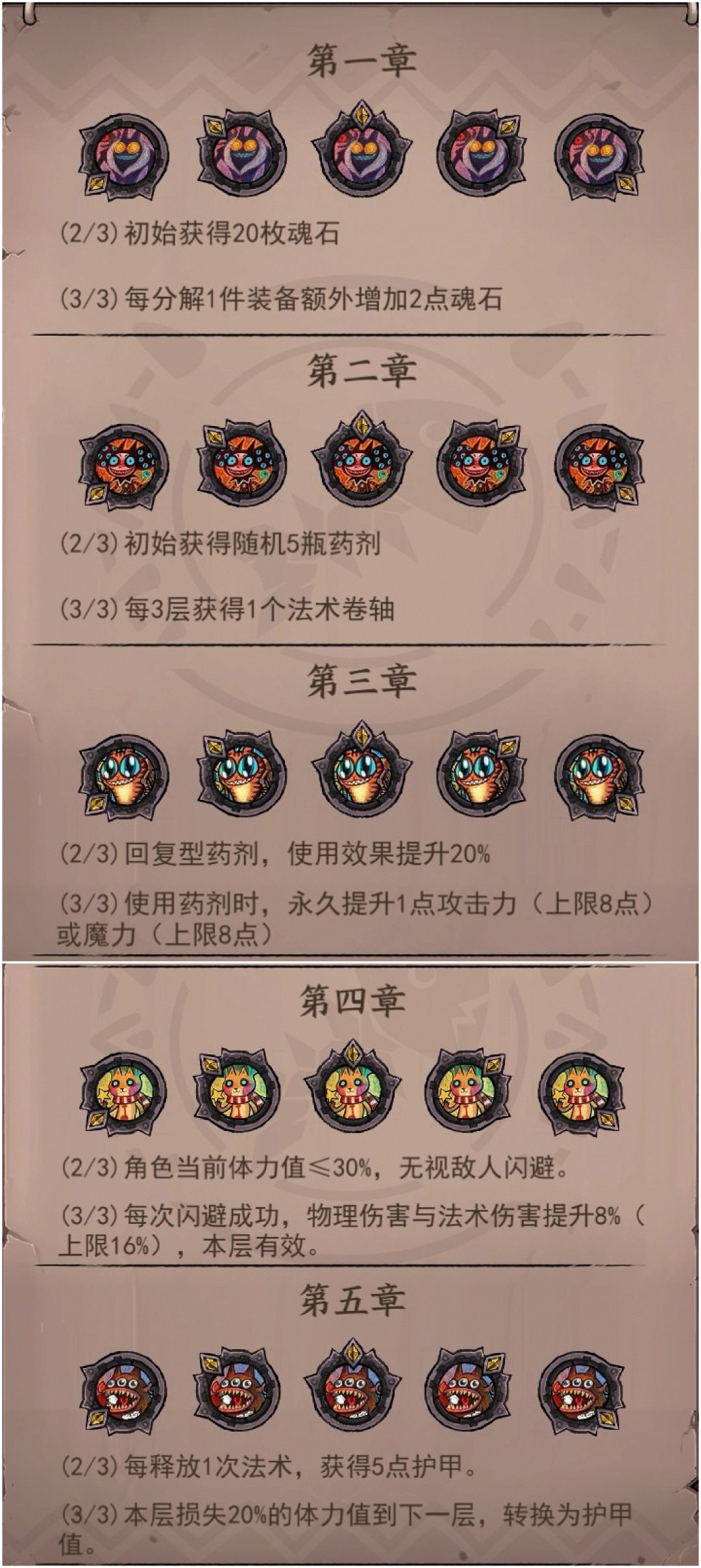 对艾琳来说五种强化分别是:攻击+1,体力+5,魔力+2,魔法+2,伤害+1