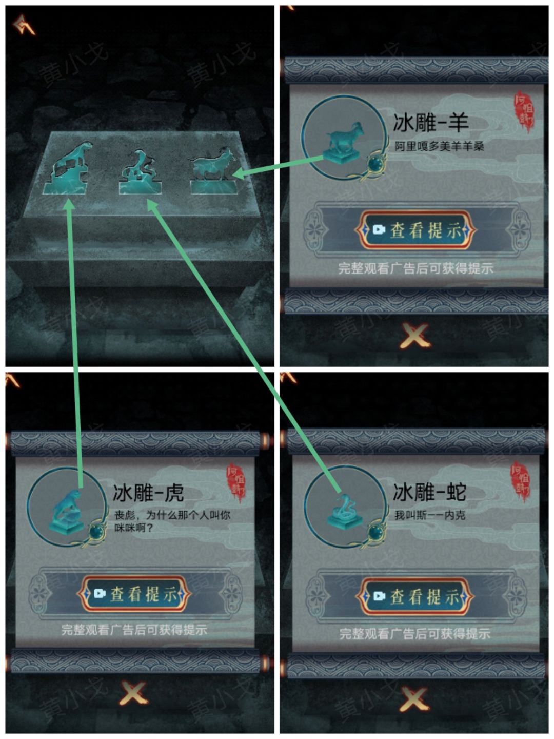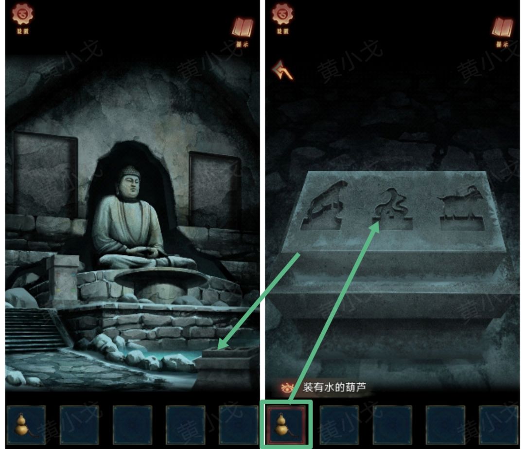 16.点击石台,把【装有水的葫芦】倒入动物凹槽