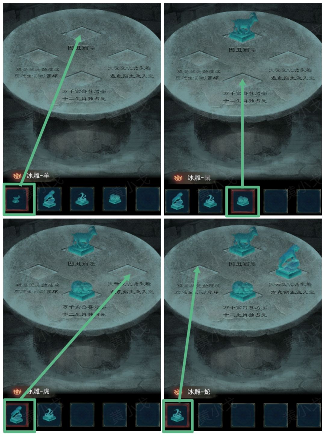17.温泉水凝固,获得【冰雕-虎】、【冰雕-蛇】和【冰雕-羊】