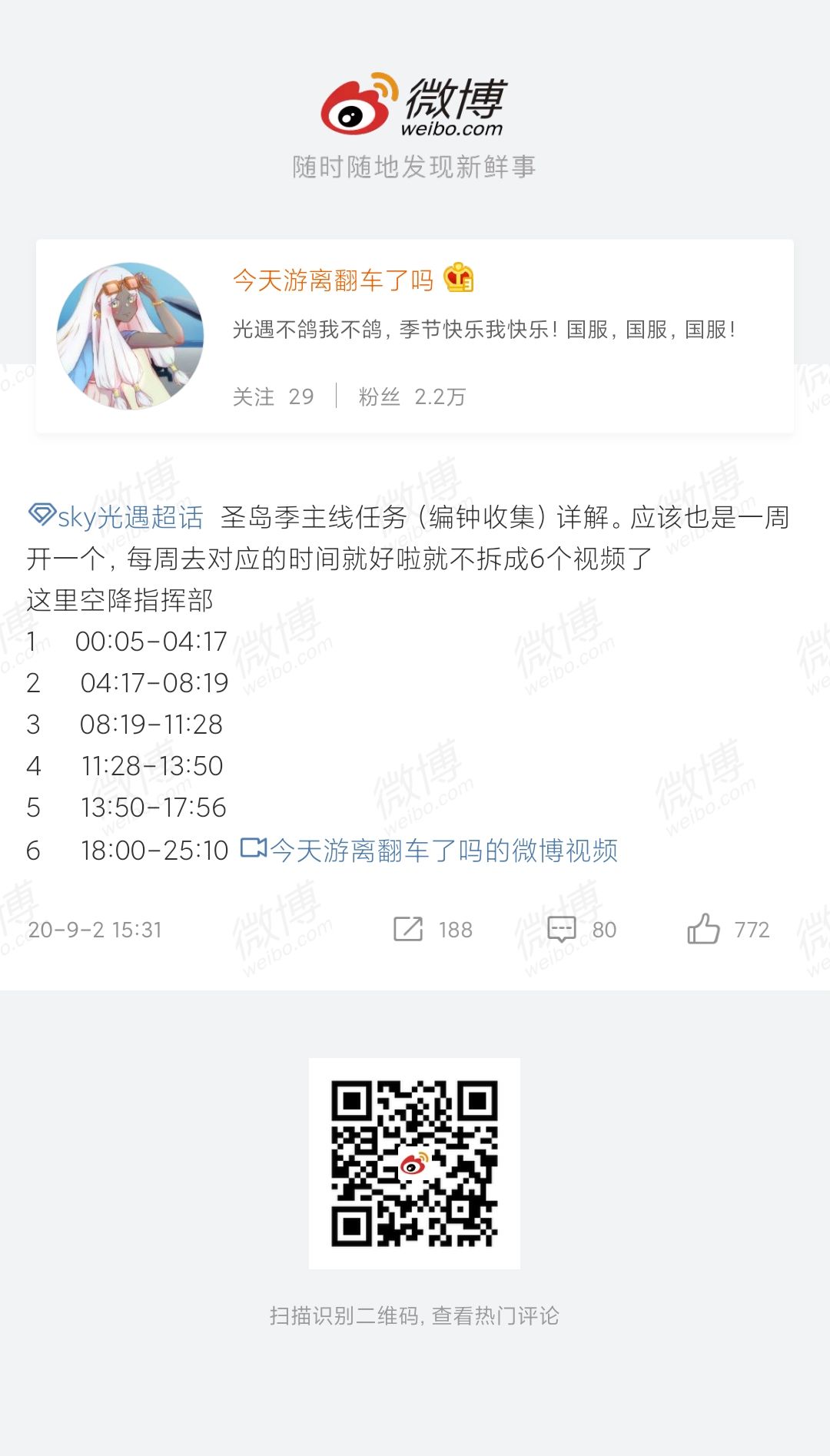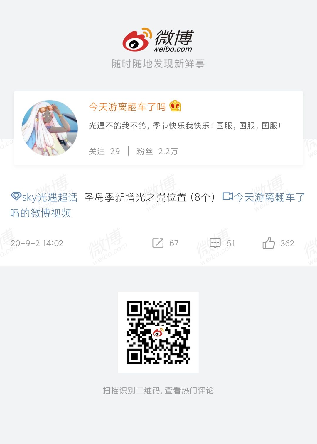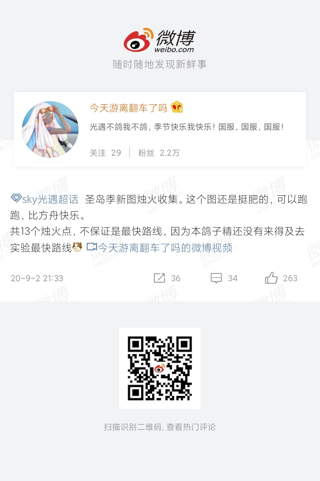 图片攻略提供者:微博sky光遇超话;#作者:今天游离翻车了吗/微博