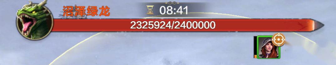 点击绿龙即可看到上方显示的绿龙当前状态,生命值右下方显示的是沼泽绿龙当前的攻击目标,也就是我们常说的仇恨,绿龙会优先攻击秒伤较高的队伍。
