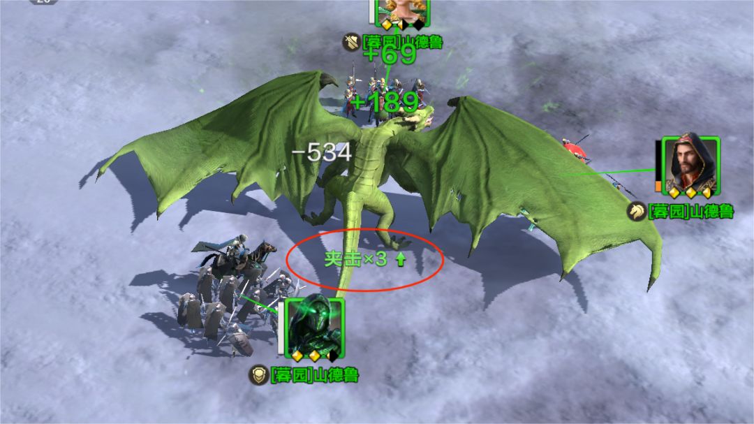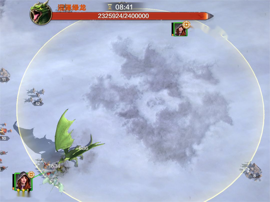 如果我们的部队承伤能力不足,这时就需要利用走位操作技巧,通过拉扯降低绿龙的攻击频率,使部队承受更少伤害。