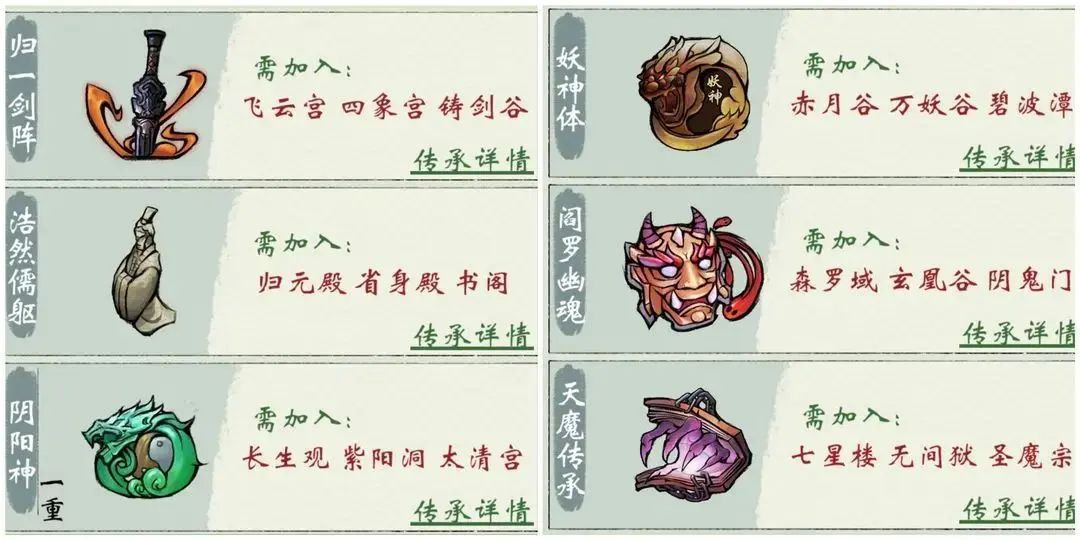 二、门派传承门派传承共计6个,具体情况如下: