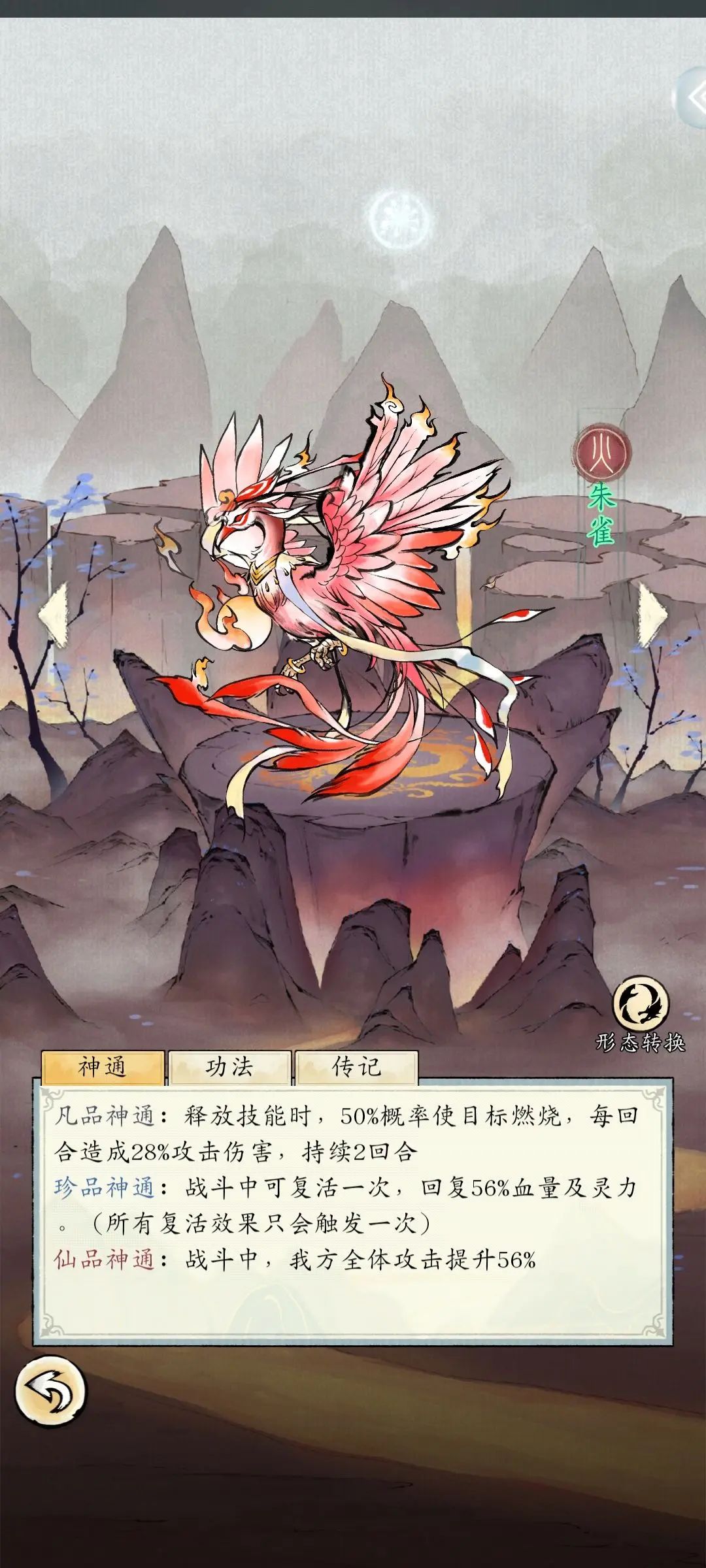 朱雀——最强后排杀手,仙品神通:全体加攻击。