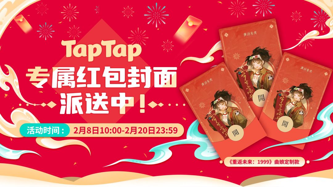 2月8日10:00-2月20日23:59,参与TapTap新春活动,完成任务即可兑换《重返未来:1999》红包封面。