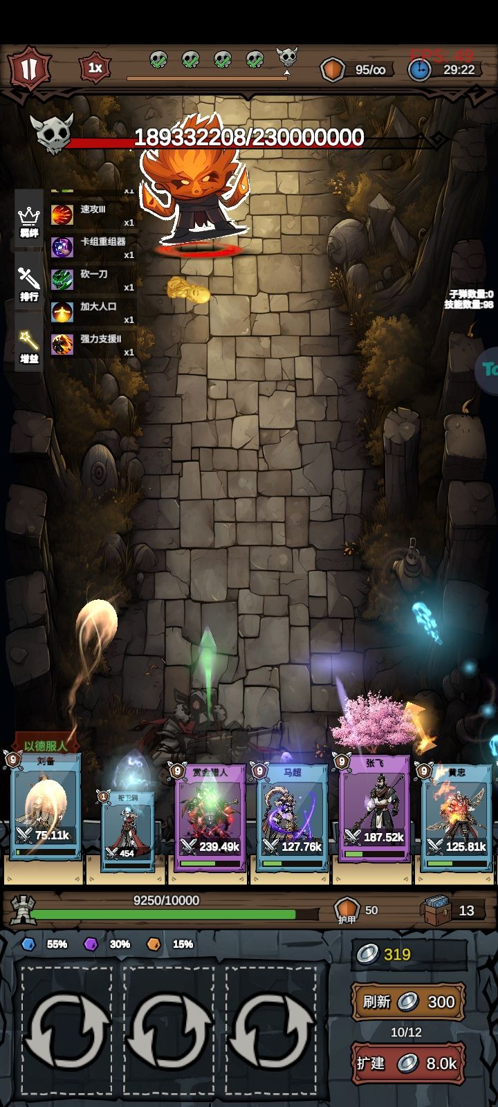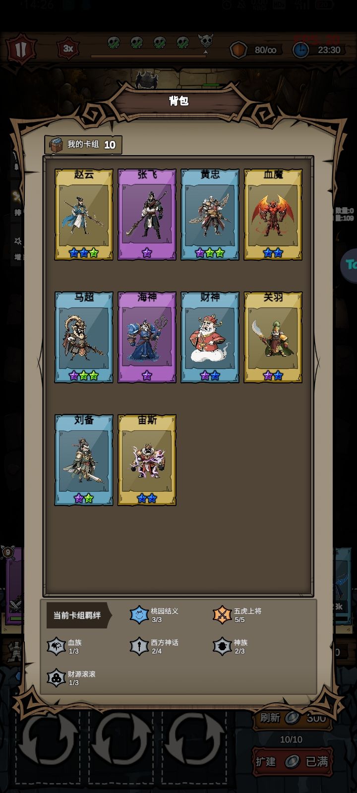 重点buff是突破上限,赛博朋克,箭术精通,奇变偶不变,主角登场,VIP顾客,破伤风,烛火莲花,砍一刀,也可以赌一把卡组重组出刘备